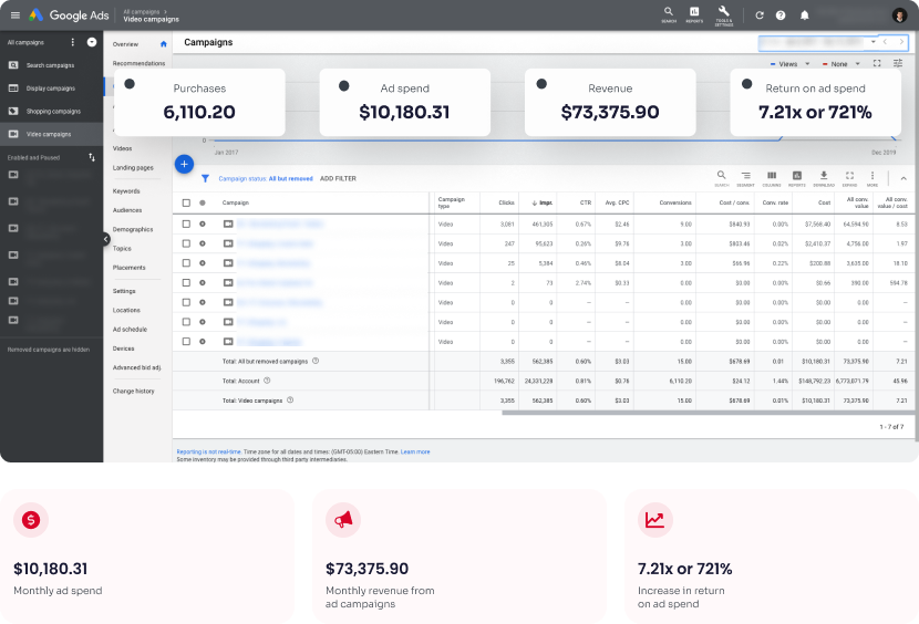 Creative ad strategy & revenue forecasting built by combining benchmarked industry averages with your historical performance data.