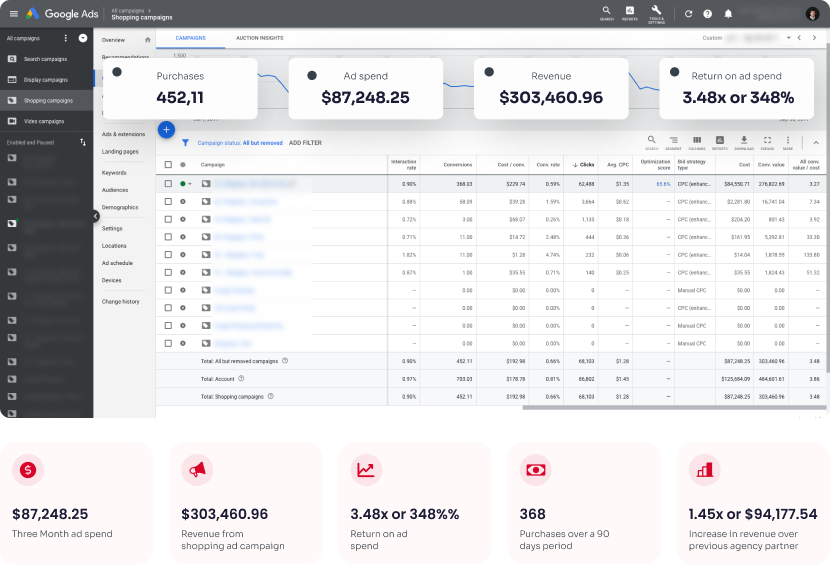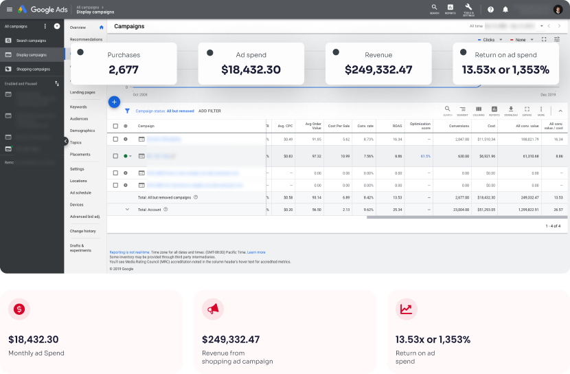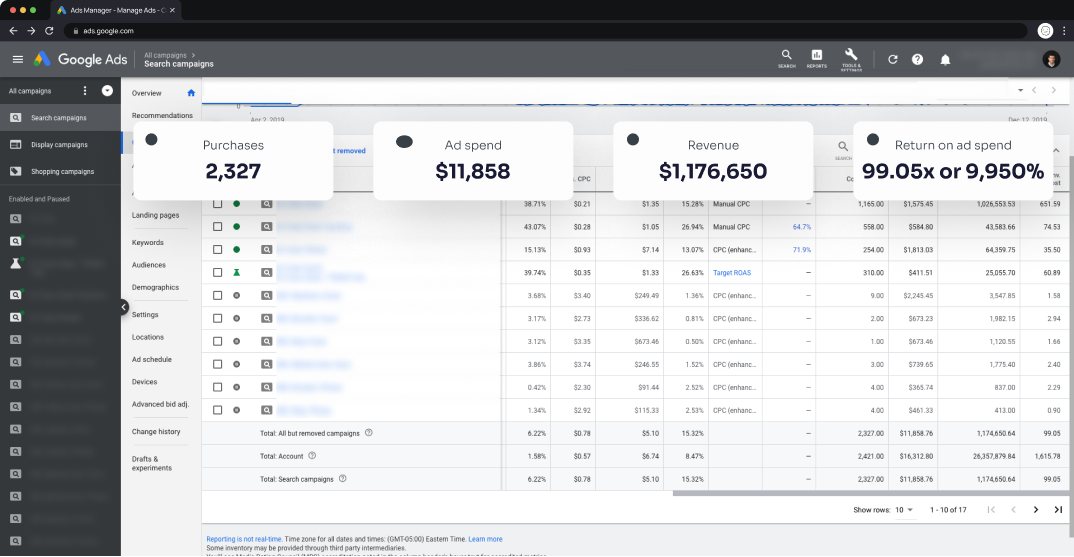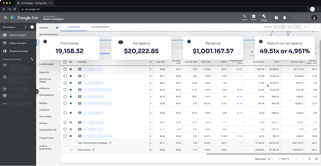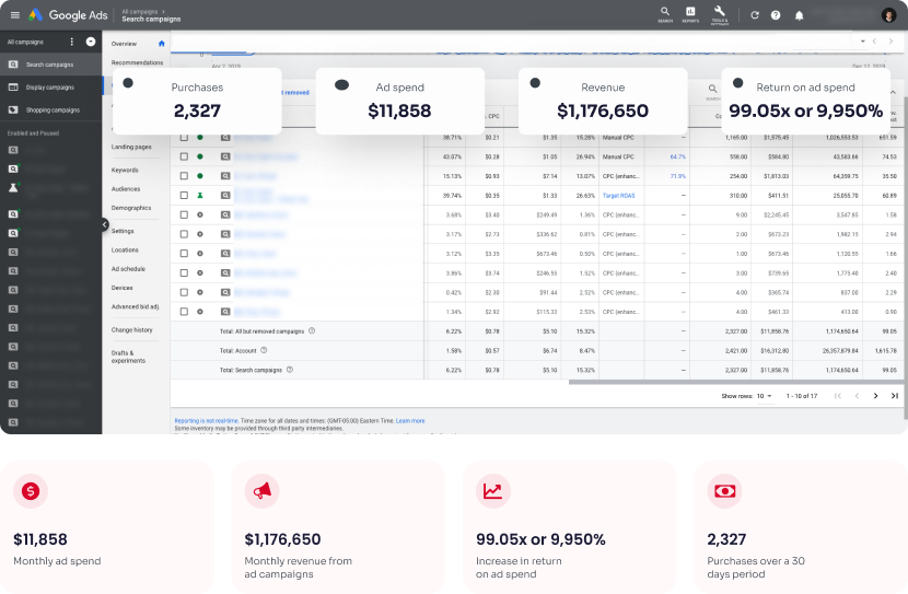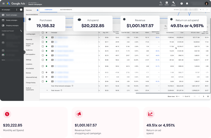Conversion campaigns optimized for purchase, bidding aligned with your funnel, landing pages, and profitability